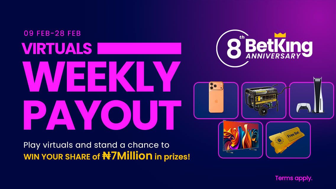 The biggest Virtuals Jackpot in Nigeria is here! Every bet you place this month boosts your chance to win from over ₦60 Million in total prizes. One lucky player will grab ₦50 Million, while over 12,000 others will win up to ₦2 Million and ₦50,000!
