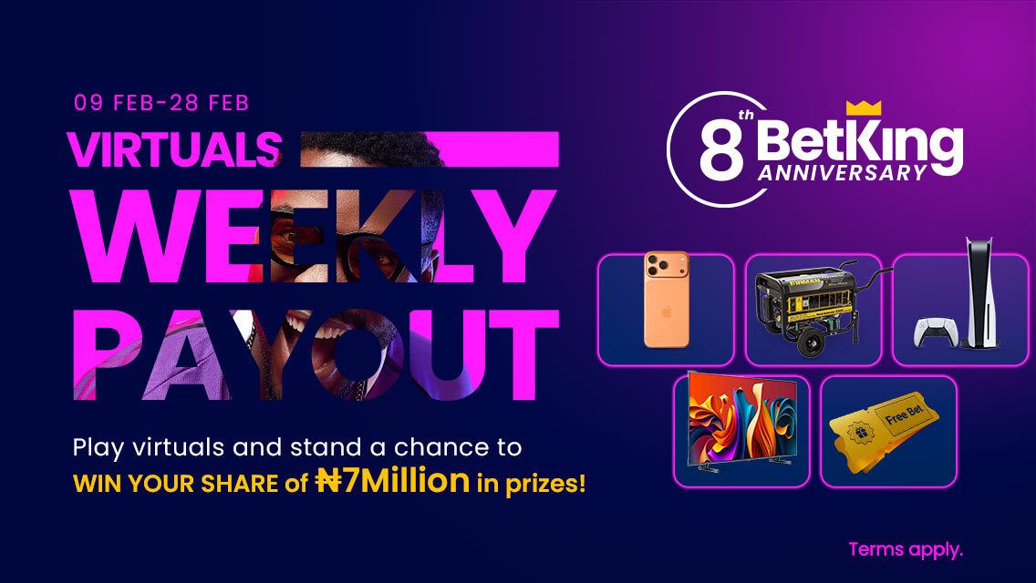 The biggest Virtuals Jackpot in Nigeria is here! Every bet you place this month boosts your chance to win from over ₦60 Million in total prizes. One lucky player will grab ₦50 Million, while over 12,000 others will win up to ₦2 Million and ₦50,000!